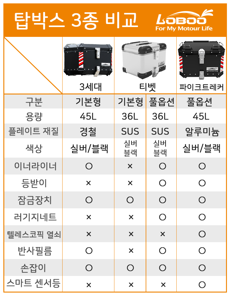 로부 3세대시리즈 탑박스 45L+DIY브라켓