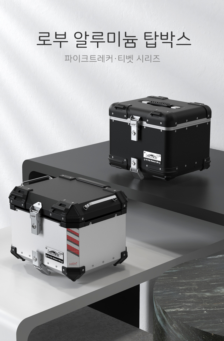 탑박스는 로부 티벳 36리터 탑박스와 파이크트레커 탑박스 36리터, 45리터 중에 선택 가능합니다.