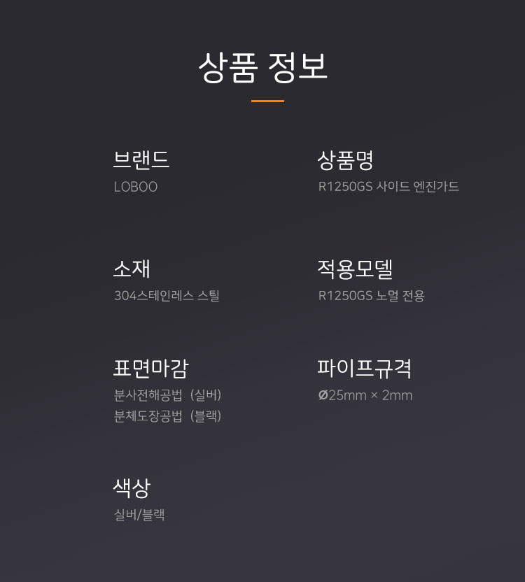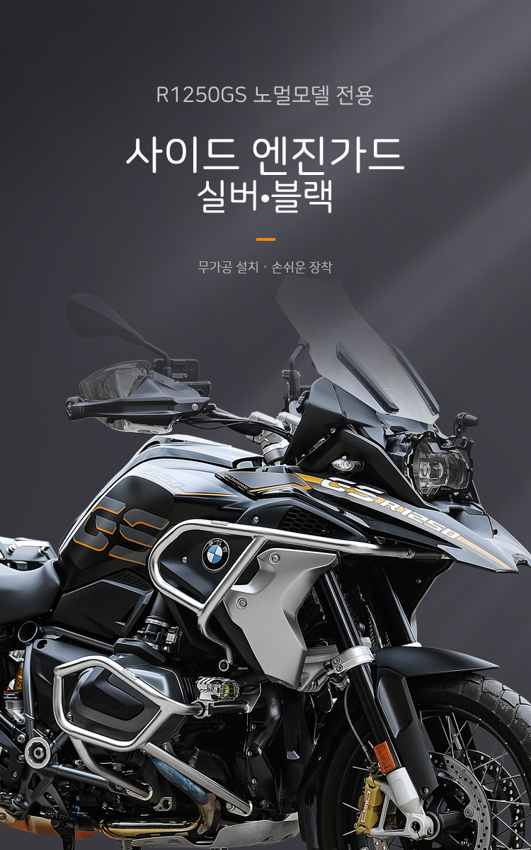 R1250GS 노멀전용 사이드 엔진가드, 안개등 부착 가능, 블랙.실버