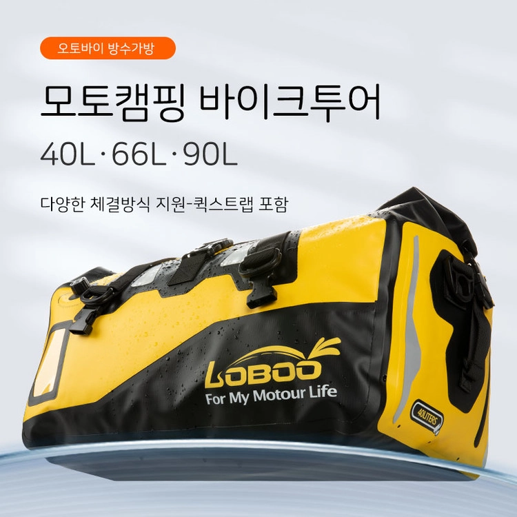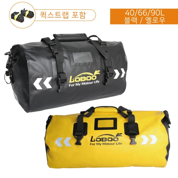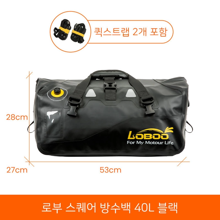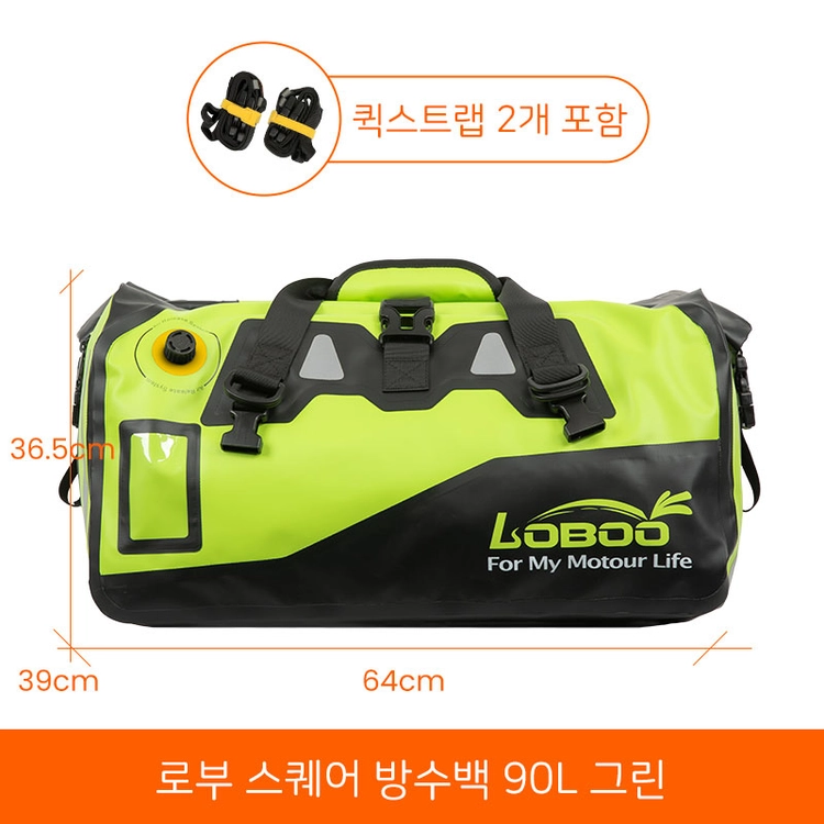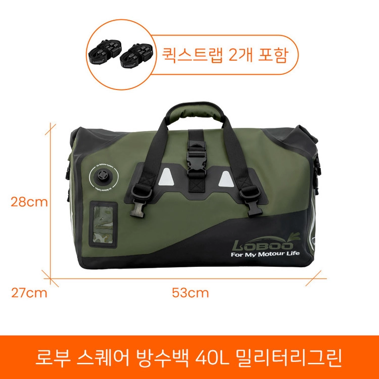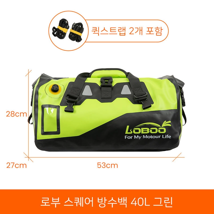[로부]스퀘어 오토바이 방수가방 40L 옐로/블랙/그린/밀리터리그린 - 퀵스트랩 포함