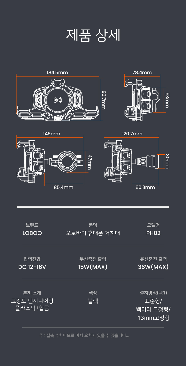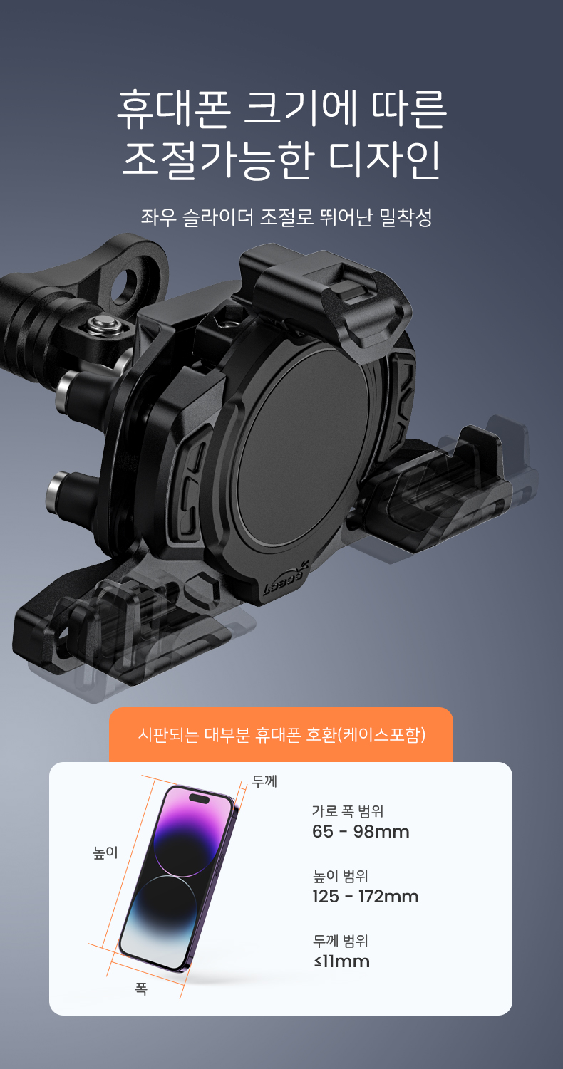 로부 오토바이 휴대폰 거치대 PH02 3가지 설치유형 선택