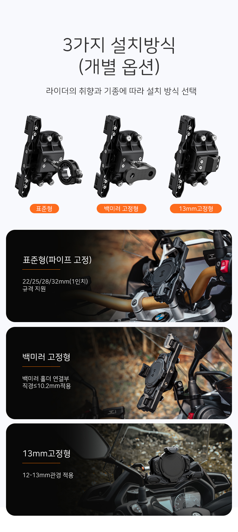 표준 파이프형,백미러고정형, 13mm봉 고정형
