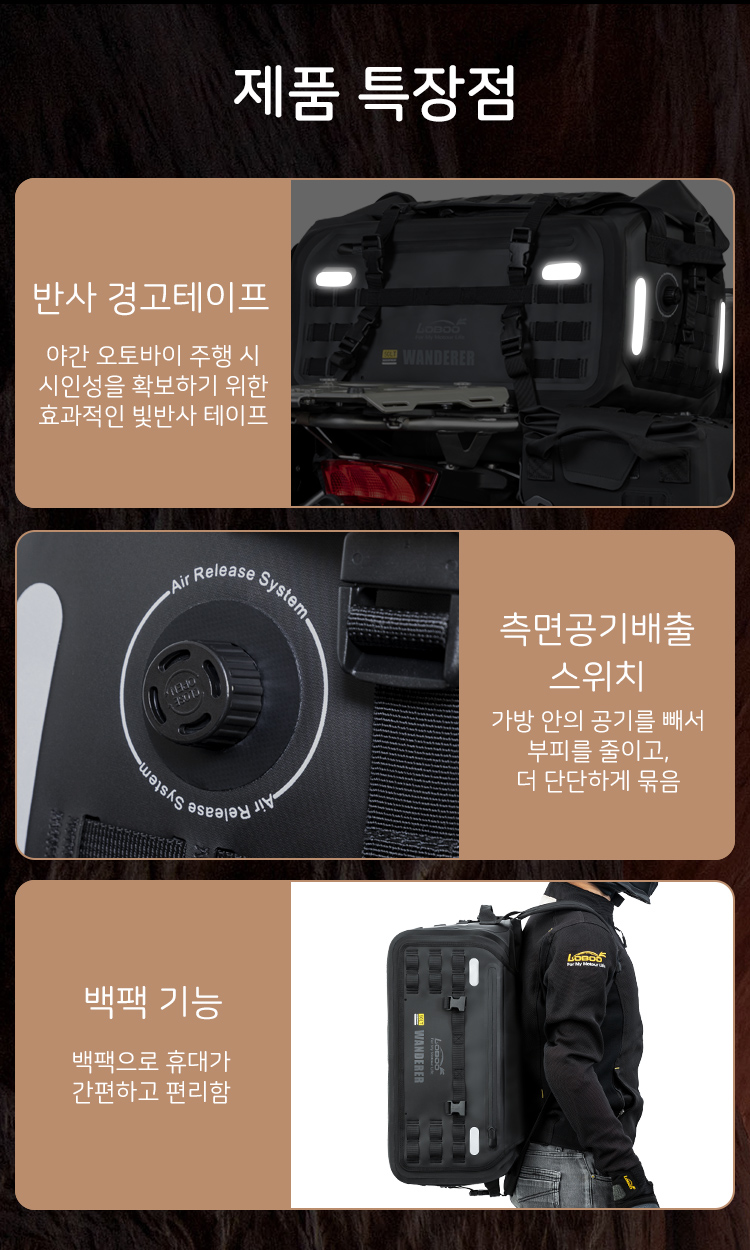 견고한 체결, 완벽한 방수성능, 백팩으로 활용가능
