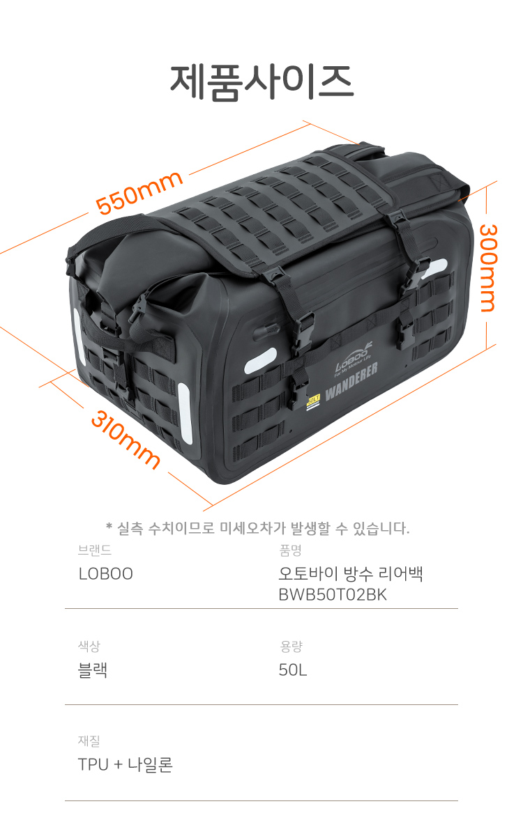 [로부]원더러 오토바이 방수 리어백 테일백 50L BWB50T02BK