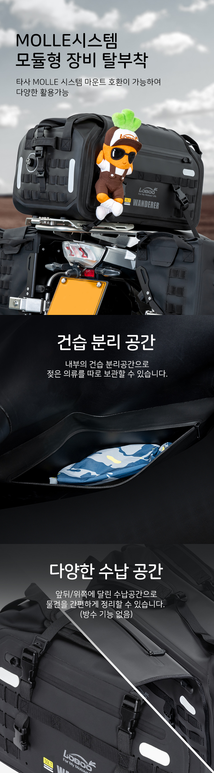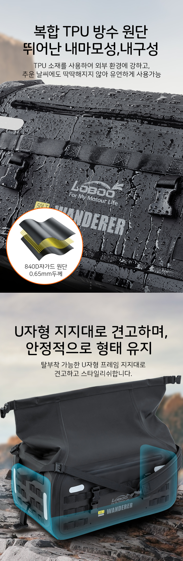 50리터 넉넉한 용량으로 모토캠핑 장거리투어에 적합