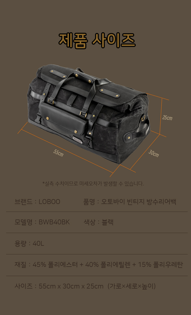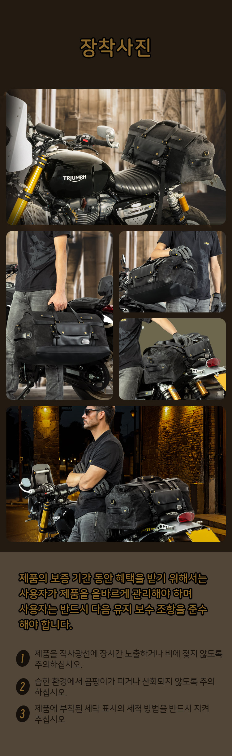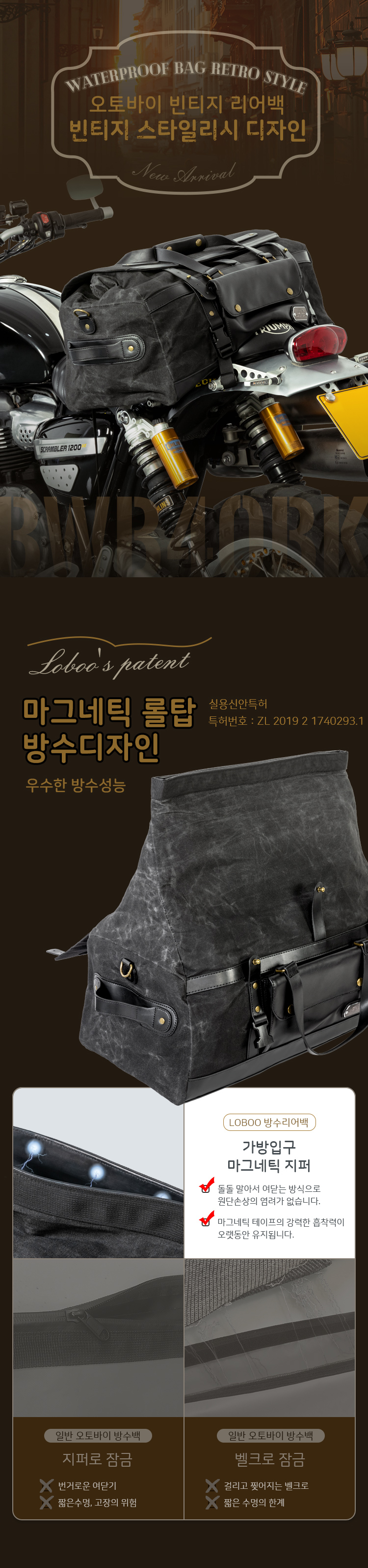 [로부]빈티지 클래식 오토바이 방수 리어백 테일백 40L BWB40BK