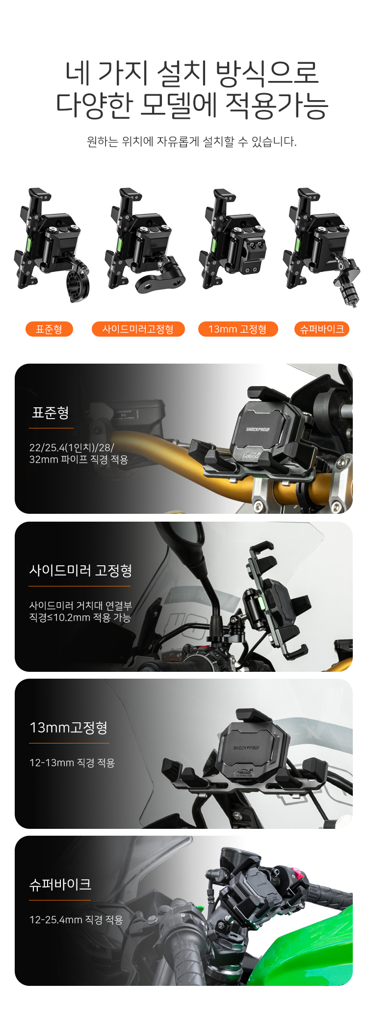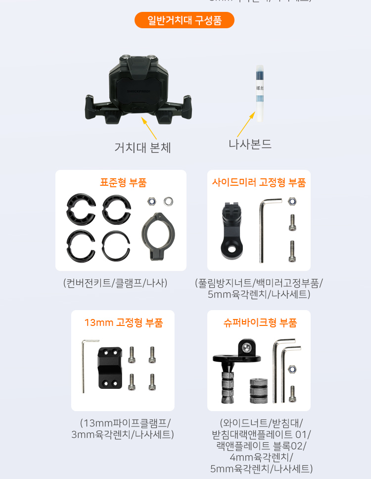 표준 파이프형,백미러고정형, 13mm봉 고정형
