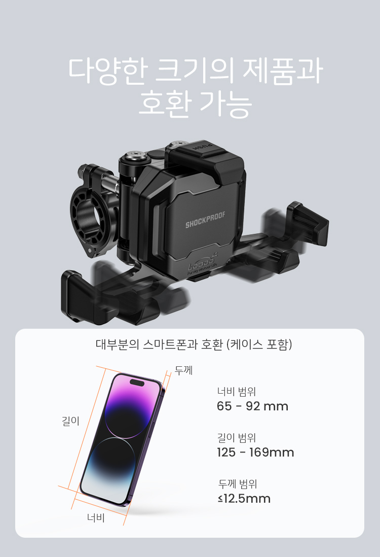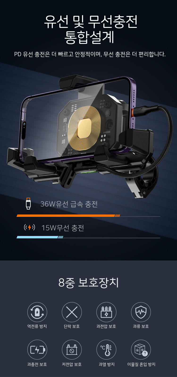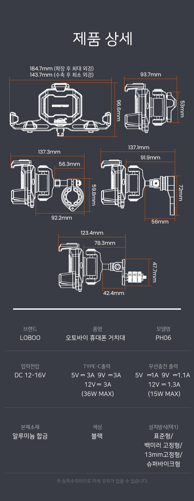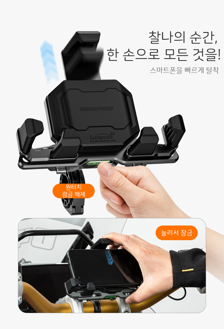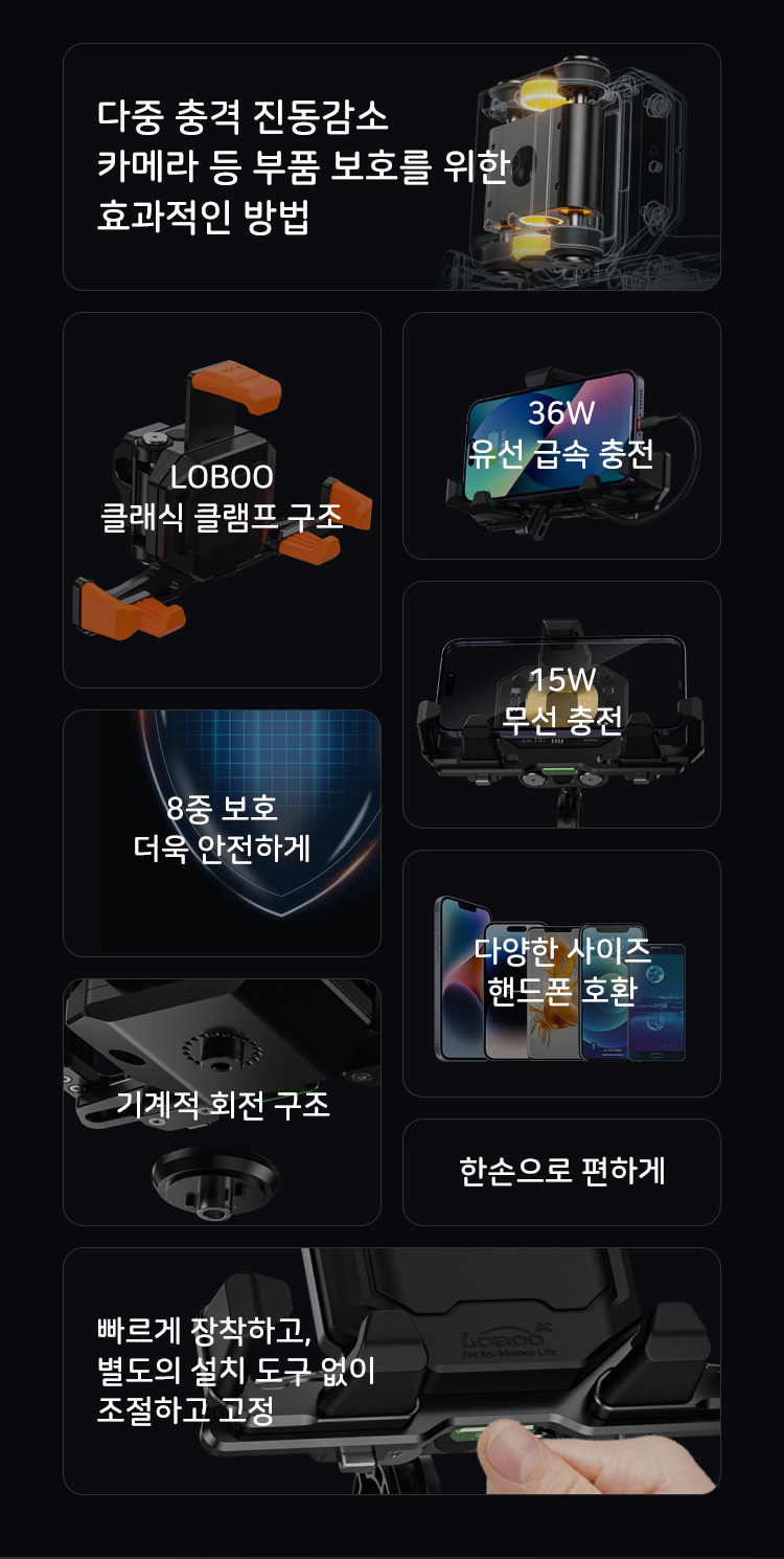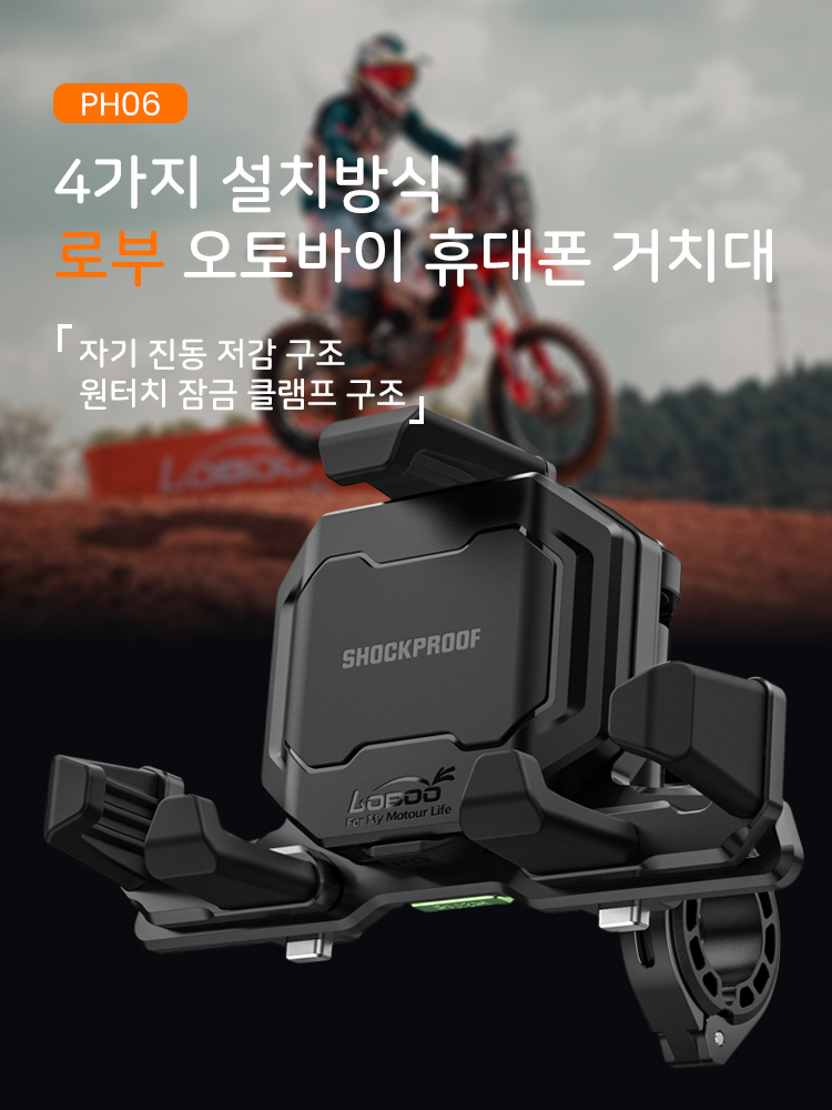 로부 오토바이 휴대폰 내비 GPS 거치대 PH06 유무선충전 기능