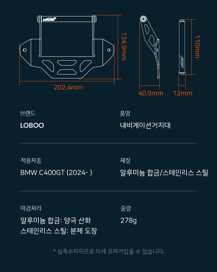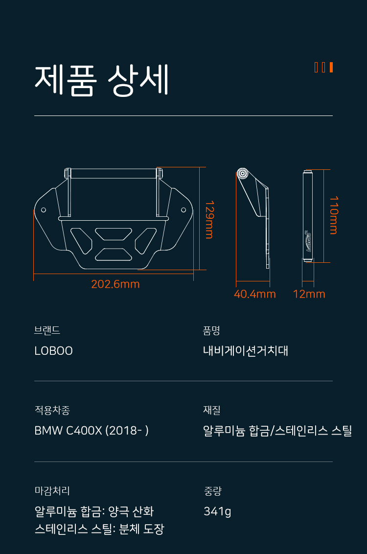 [로부] BMW C400X (2018-)/C400GT(2024~) 전용 오토바이 내비거치대 12mm CDZ092