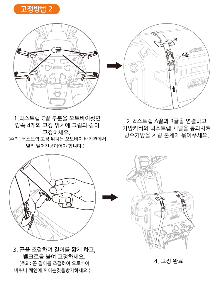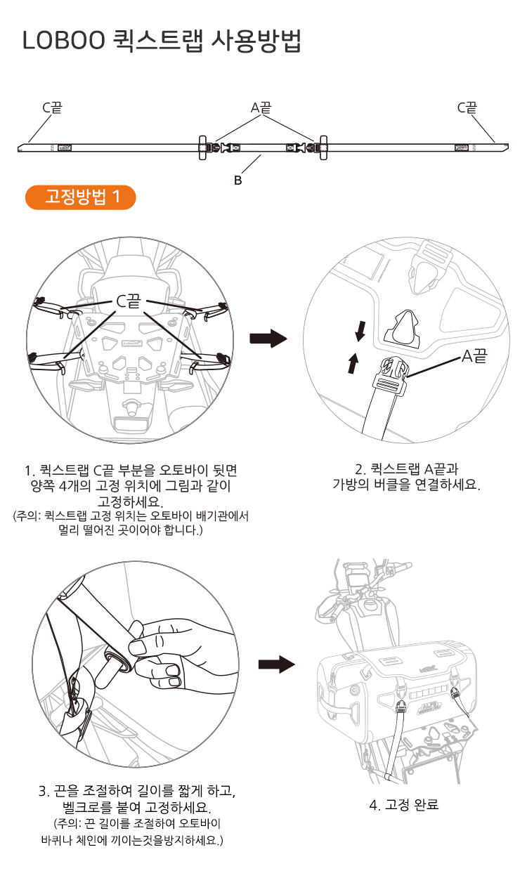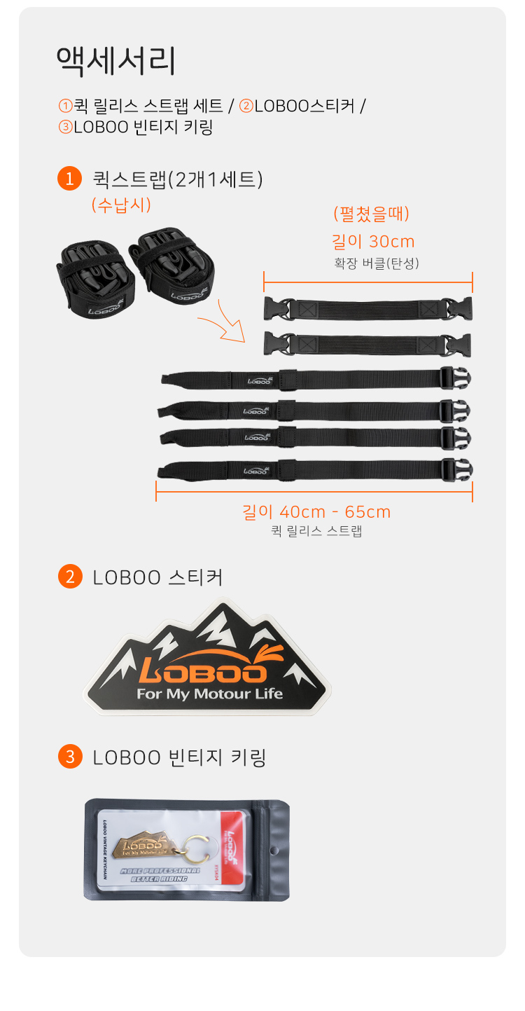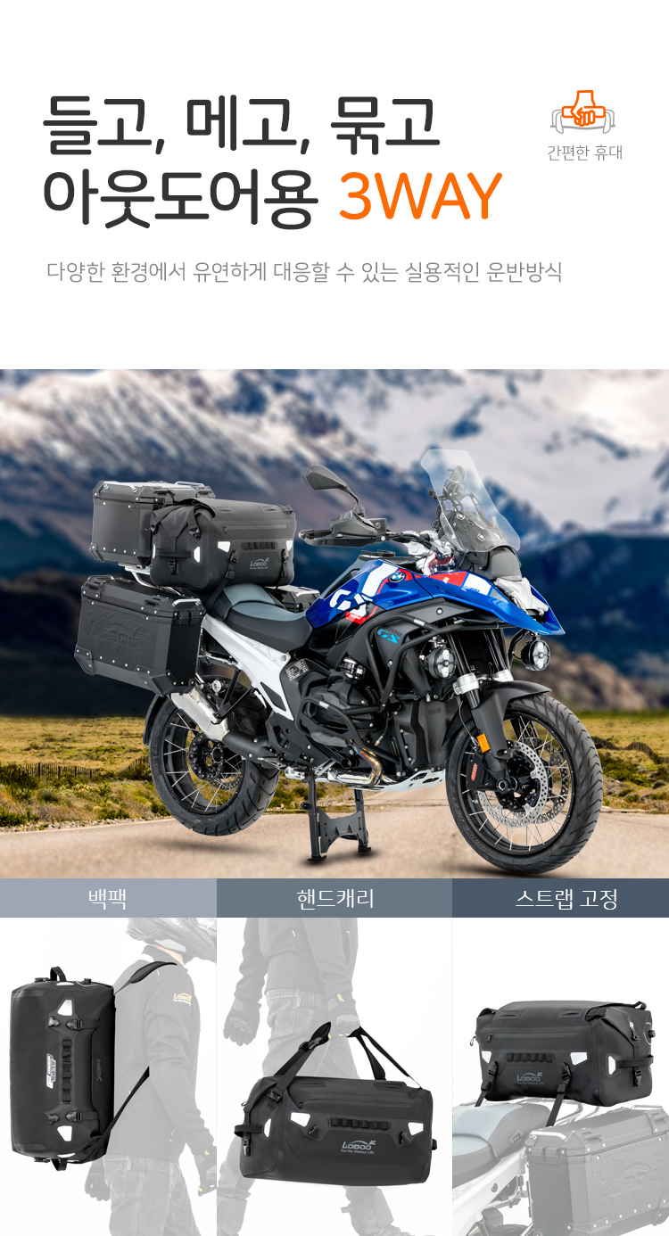 퀵스트랩 포함으로 장착이 간편하며, 캠핑, 여행, 어드벤처 라이딩에 최적화된 멀티 리어백입니다.