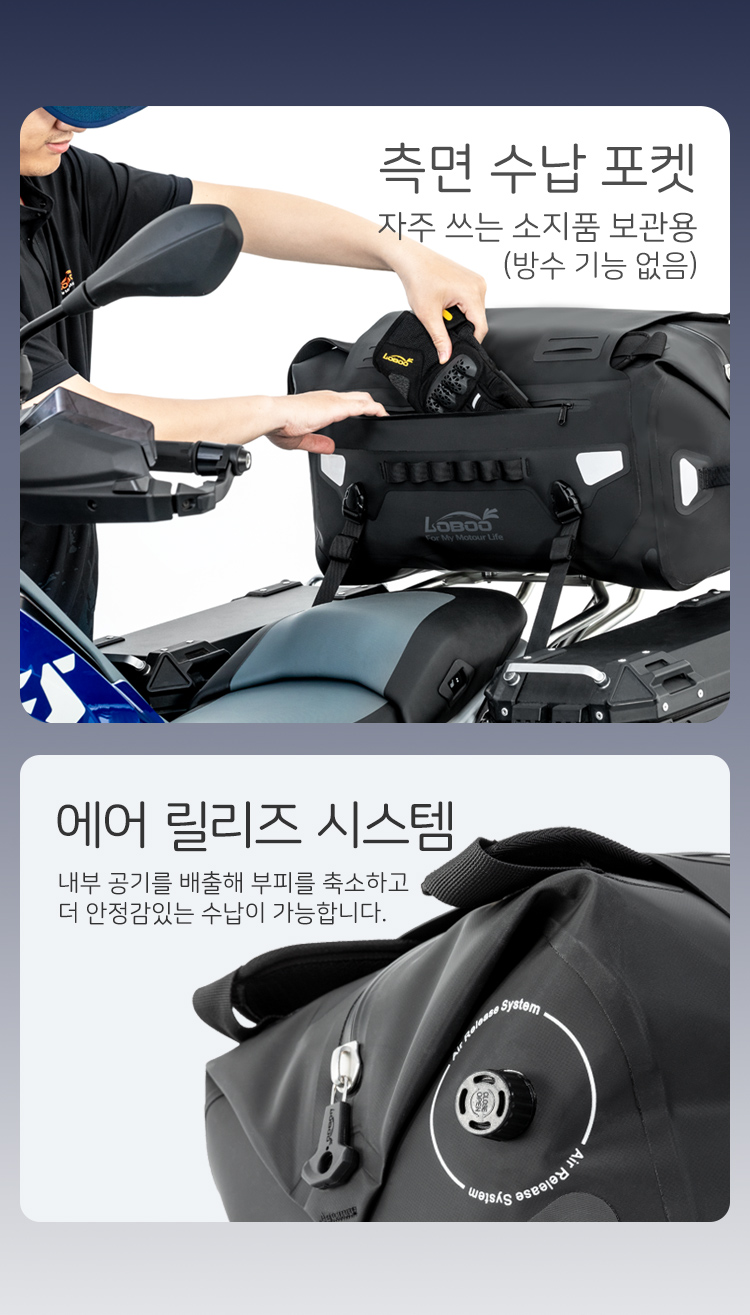 투어링 라이더를 위해 설계된 리얼 방수 리어백.