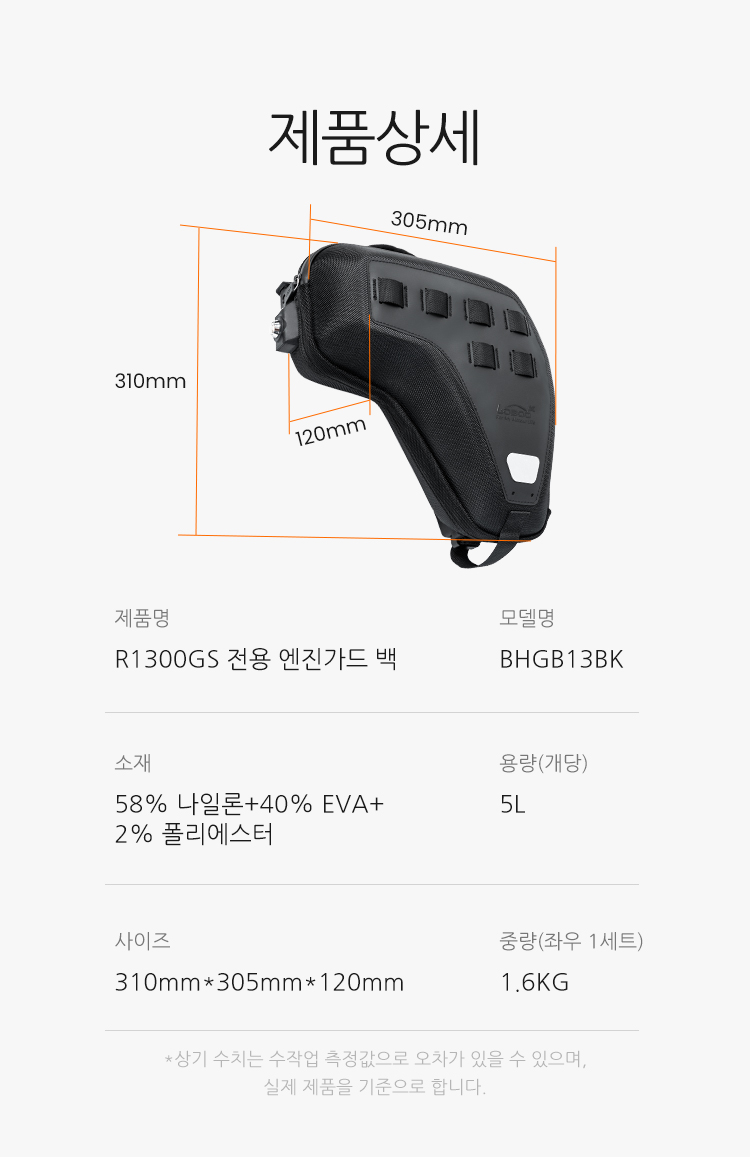 [로부]BMW R1300GS/ADV 전용 가드백 사이드가드 엔진가드용 BHGB13BK